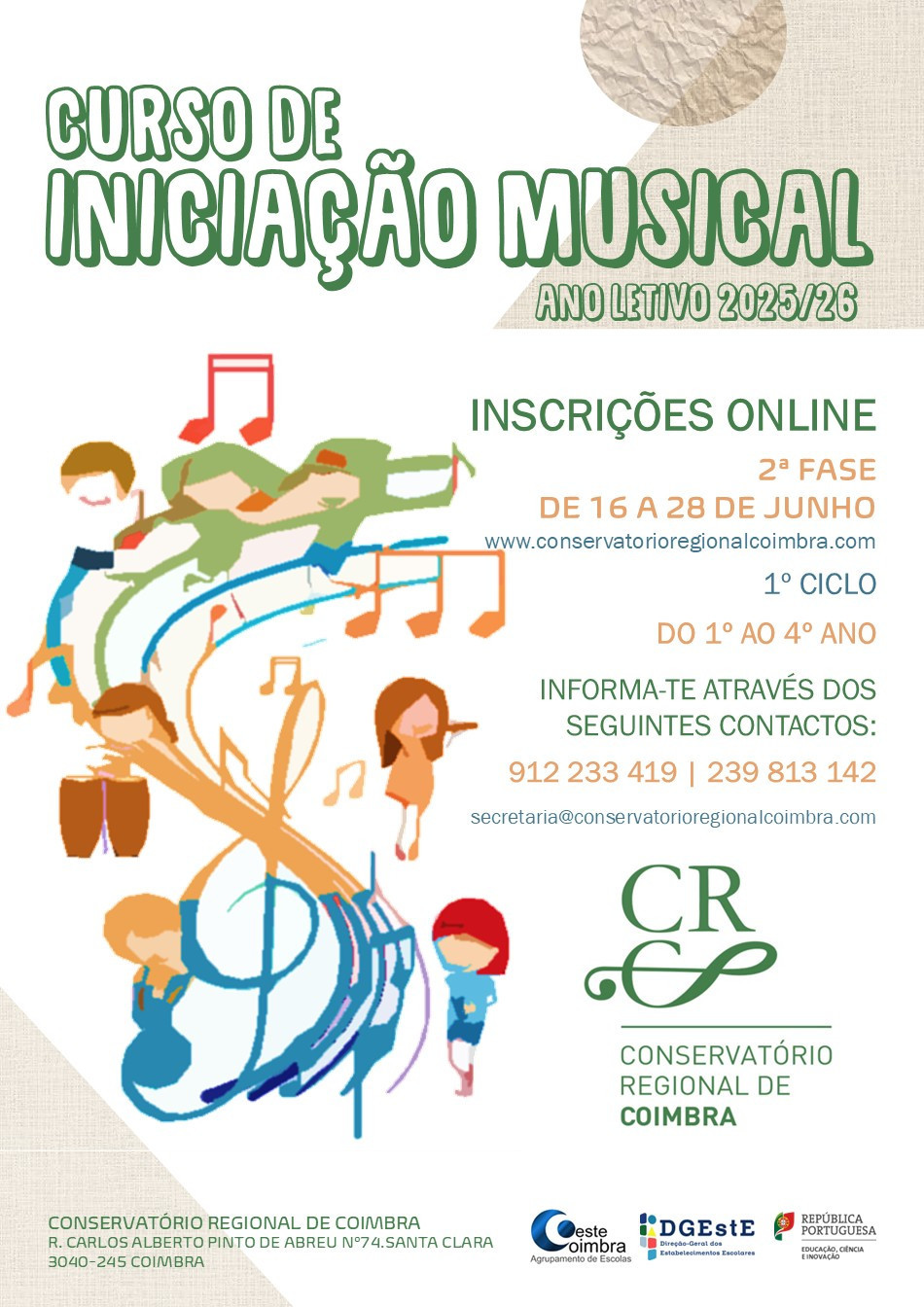 O Curso de Iniciação Musical destina-se aos aunos que vão frequentar o 1ºCiclo (1º ao 4ºano) no ano letivo 2025/2026.