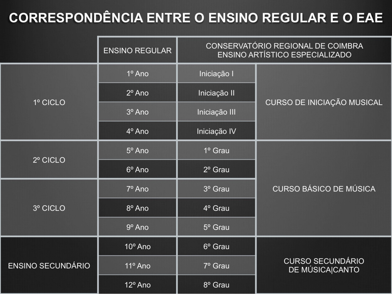 O Conservatório Regional de Coimbra possibilita a frequência de cursos oficiais de música em três tipos de regime: